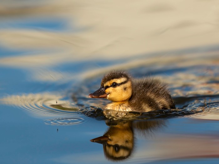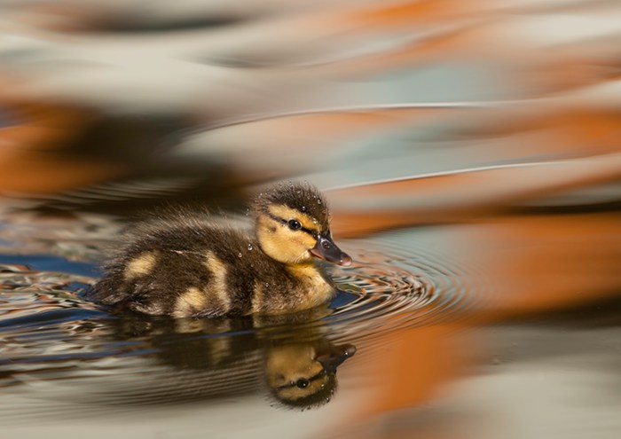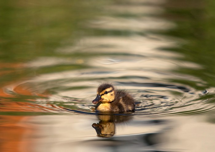 En höjdpunkt om våren förutom lövsprickning och blommande träd, eller den skira grönskan som genom ett trollslag smyger sig på, det är tycker jag är när Andmamman plötsligt kommer vaggande med sina små telningar mot närmsta damm. I redet i någon närbelägen buske har hon säkert utstått en hel del, rensning av rabatter eller bensindrivna trädgårdsredskap för att inte tala om lösa hundar, katter eller andra rovdjur. Redan i mars såg jag en and med två små dunbollar men det var ju alldeles för tidigt, kalla frostnätter och dåligt med mat dömde förmodligen dessa redan från början. Häromveckan kom i alla fall en av de änder som brukar frekventera vår lilla damm med 13 stycken små dunbollar, och det i precis rätt tid när myggen kläcks. Som små racerbåtar far de runt i dammen och decimerar blodsugarna och man blir glad i hela kroppen av denna cirkus! Jag vet inte vad rekordet för en andmor är beträffande antal ungar men tycker att det är ganska otroligt hur hon lyckas producera så många ungar, hur får hon plats med alla äggen i den lilla kroppen? Dock brukar de ju reduceras ganska fort, jag har fått se en del mista hela sin kull i rask takt men också hur några fått behålla allihop tills den dag de flygtränar på gräsmattan för att sedan försvinna ut i världen. Hur som helst är det ju oemotståndligt att gå ner med kameran och försöka fånga den ultimata dunbollsbilden eller myggjakt, trots att man redan har hundratals bilder på temat.